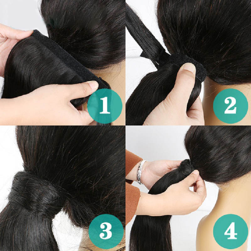 Easy to install and light weight. High quality human hair that will last and last. Just simply make a ponytail with your own and attach the wrap around on it. The extra hair on the velcro wrap will create natural blend. omgnb detail 9omgnb detail 10