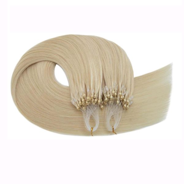 High-Quality Remy Hair: The White Blonde (#60) Micro Loop Human Hair Extensions are crafted from top-grade Remy human hair, ensuring a smooth, natural look and feel with minimal tangling and shedding.